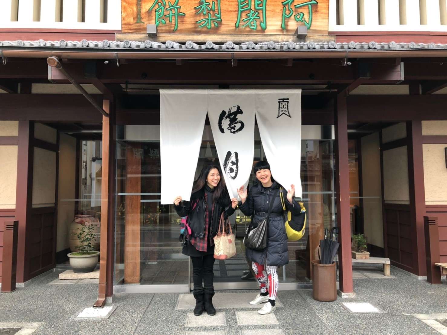 翌日は、せっかく出町柳に来たので、近くにある老舗で名物の阿闍梨餅をいただきました。お店の中に飾ってあったお雛様をみて、今日がひな祭りだったことに気が付き、女性でありながらこの日をすっかり忘れていたことに3人とも苦笑い。でもこのお雛様から幸せを分けてもらった気がしました。