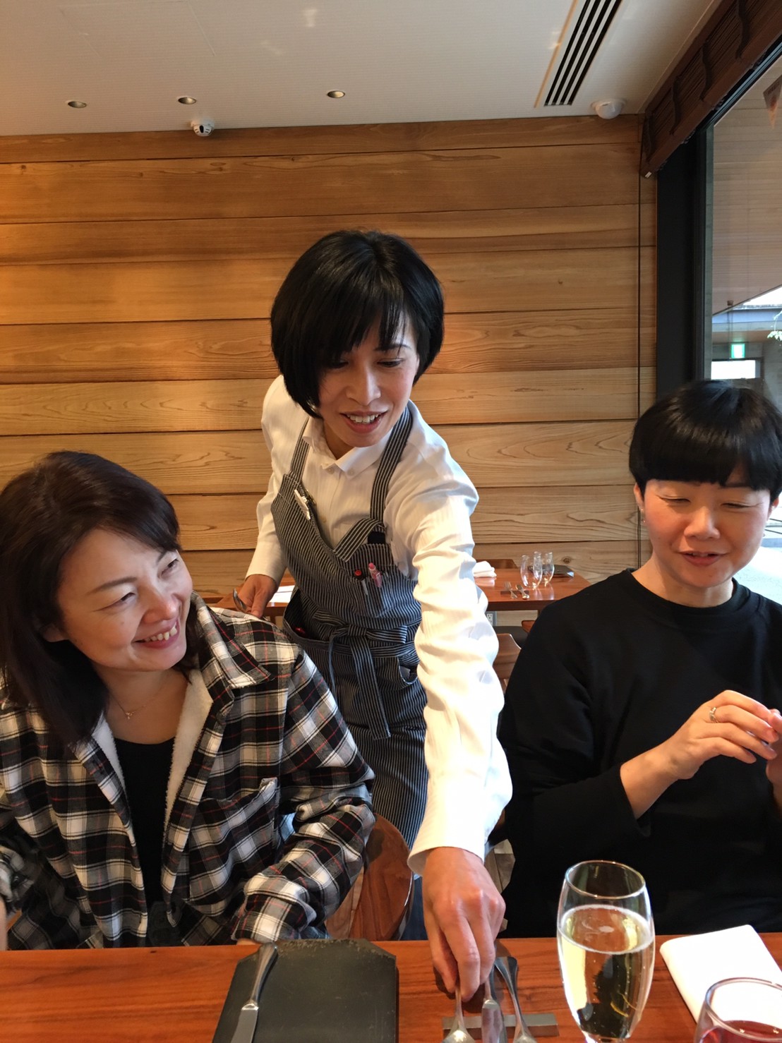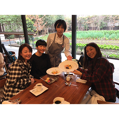 午後は、チームメートが働いているレストランで、おいしい料理をゆっくり堪能しました。彩り鮮やかな美味しい野菜がたくさん味わえるすごく素敵なお店で、お店の雰囲気や料理の味に3人とも感動の連続。仕事中の彼女をしょっちゅう呼び止めては質問の嵐。それに初めて見た仲間の働く姿は、白いシャツにエプロンが似合っていてとても素敵でした。
