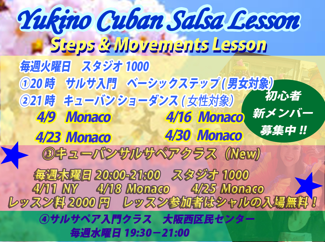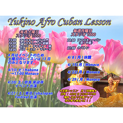 4月のレッスンの日時と場所のご案内です。